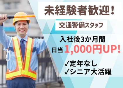 18歳以上なら年齢上限なし!【がっつり稼げる交通誘導】日給保証あり!入社後3か月間日当1,000円UPキャンペーン!