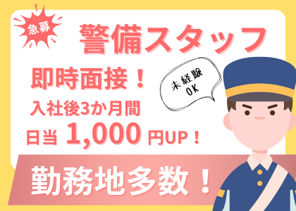 | 応募資格 | 18歳以上(警備法による) 未経験からベテランの方、資格お持ちの方大歓迎! |